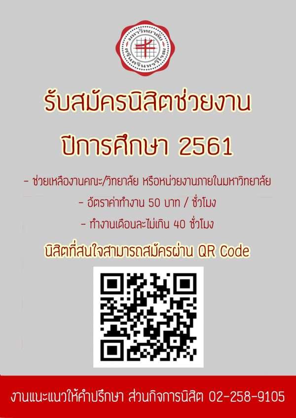 รับสมัครนิสิตช่วยงานประจำปีการศึกษา 2561